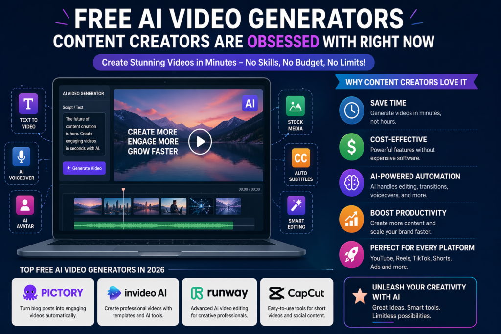 This is where AI video generators step in. They save time, reduce costs, and increase productivity. In 2026, creators are obsessed with tools that can generate videos in minutes instead of hours. AI tools are no longer just “nice to have”—they’re becoming essential.